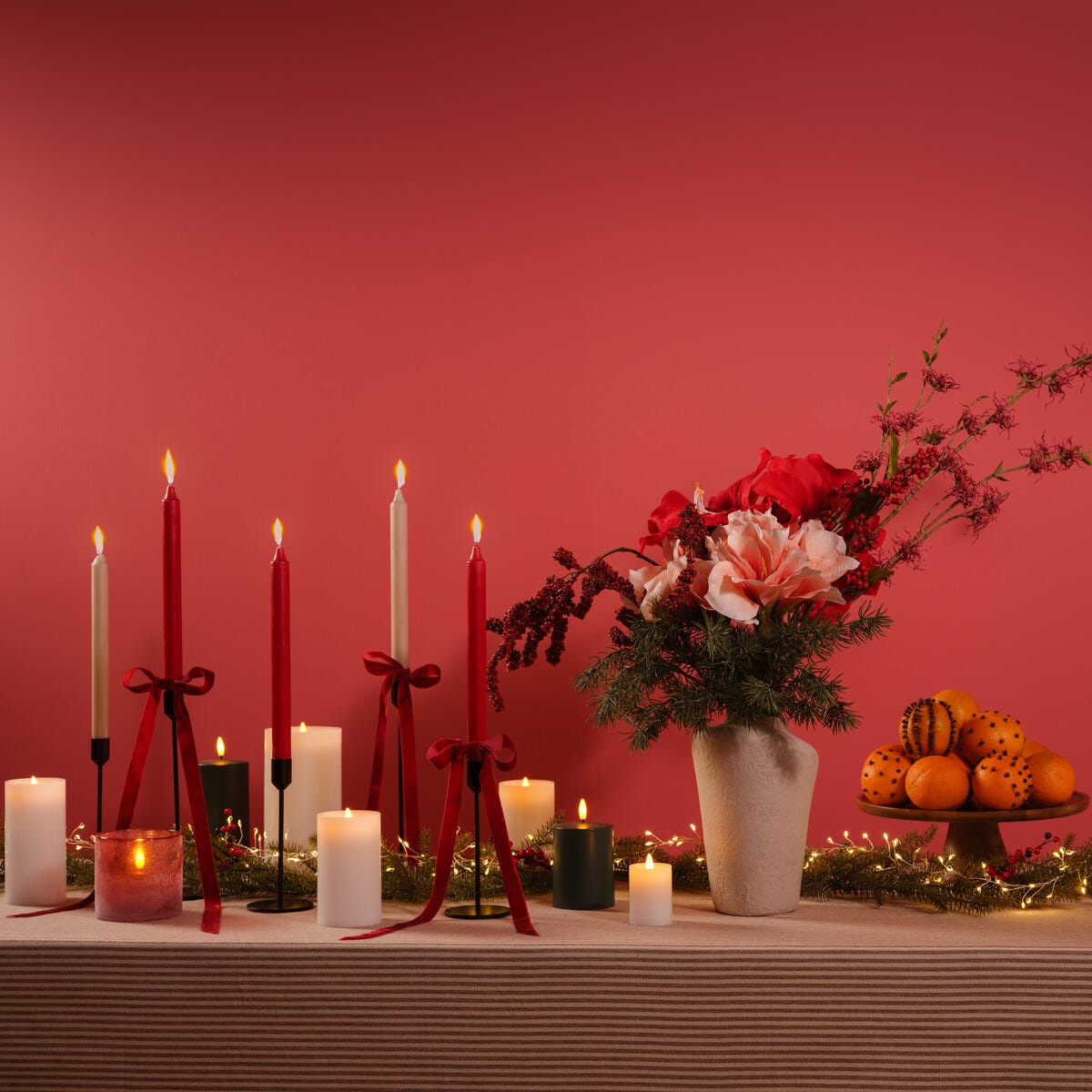 • Fine, hvite vokslys med naturtro flamme – lyser i opptil 180 timer per lading.
