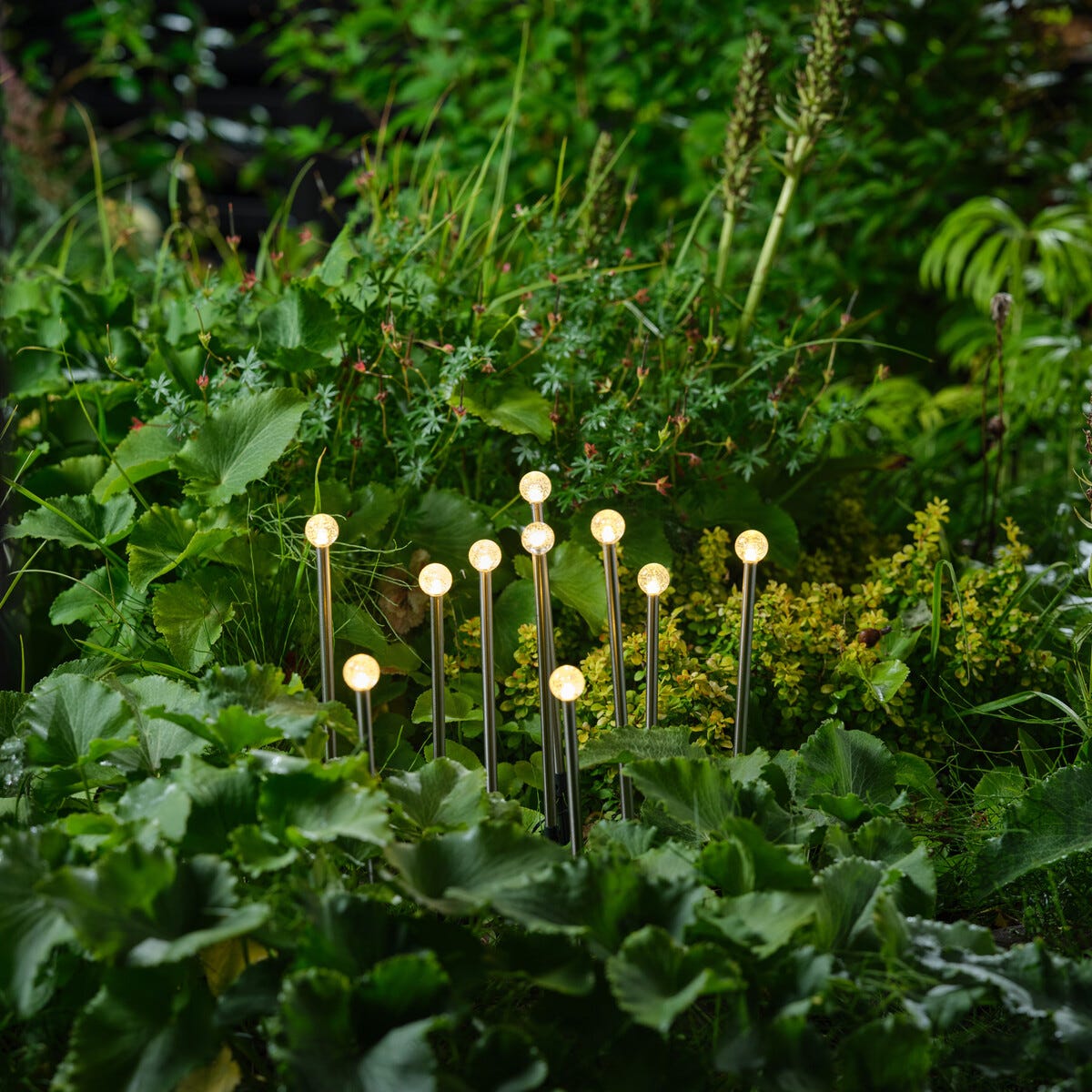 • 10 lyskuler i akryl som sprer et mykt, varmhvitt lys i hagen.