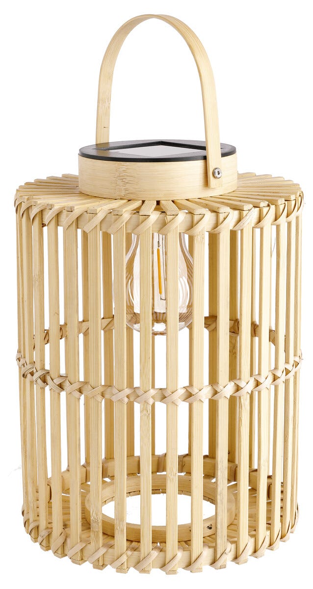 • Værbestandig solcellekurv av FSC®-merket bambus med en retroinspirert LED-pære.