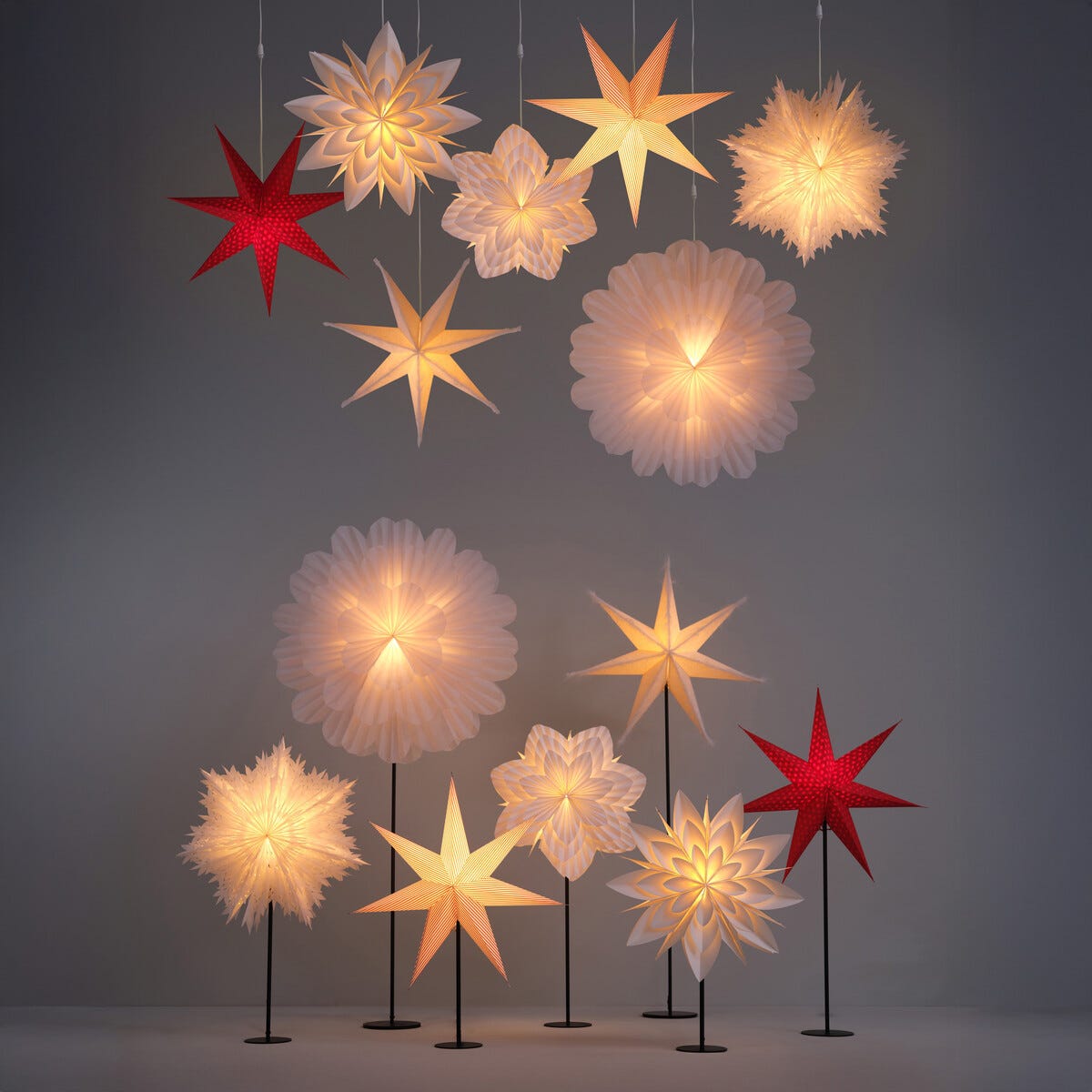 • Stor og dekorativ julestjerne med mykt lysskinn – laget av FSC®-merket papir.