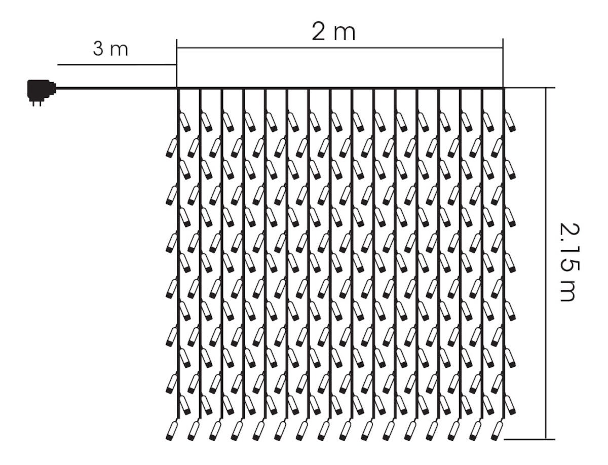 • 2 m utbyggbar lysgardin med 16 slynger - få ønsket lengde.