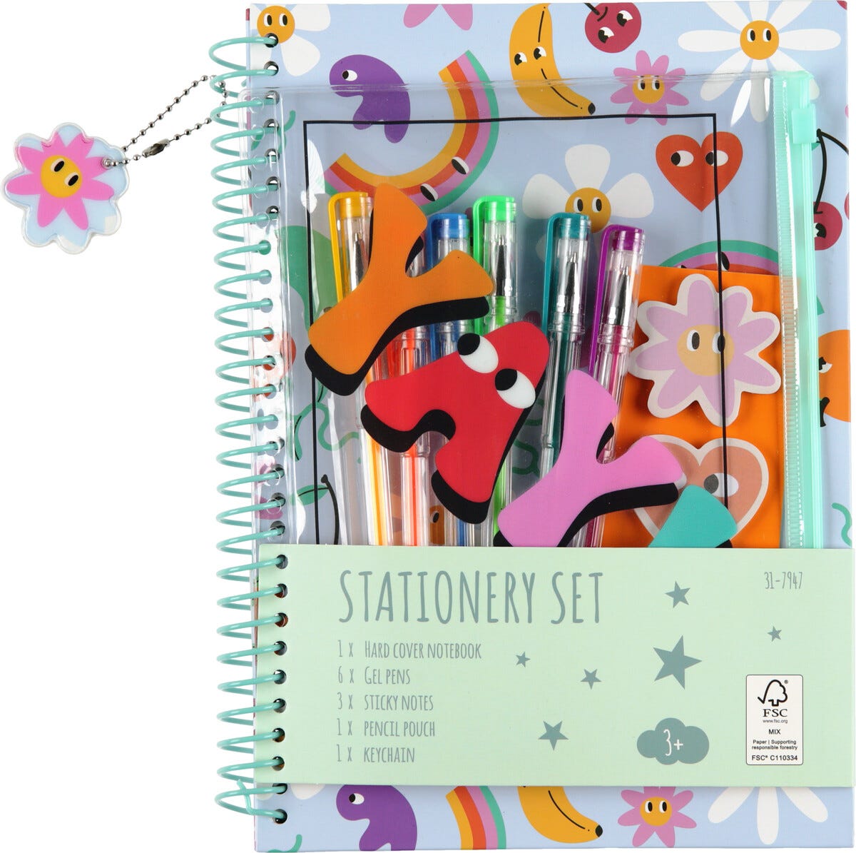 Notatbok for barn med 6 gelpenner og tilbehør
