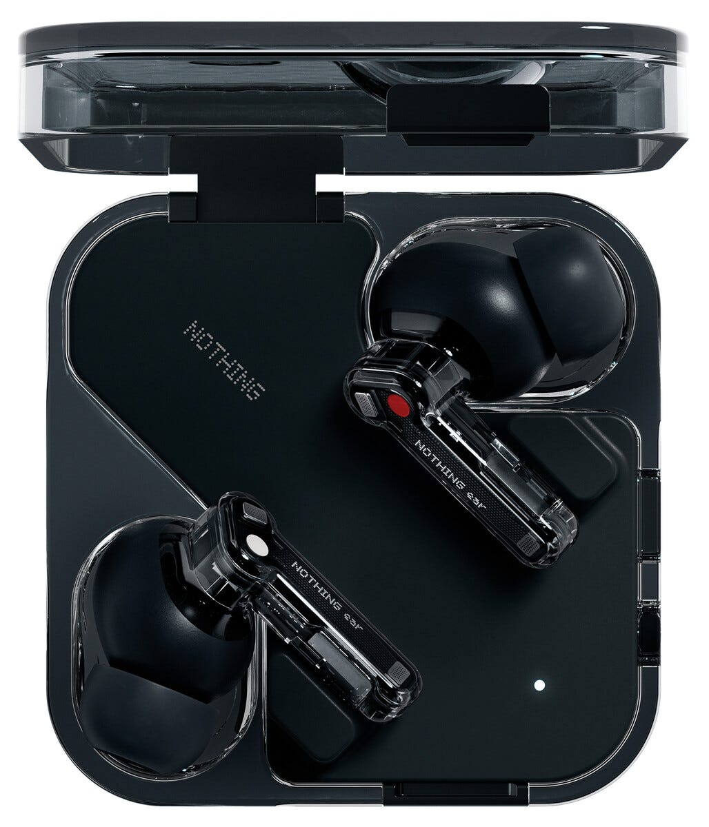 • Nothing Ear in-ear-ørepropper med unik design og vannbestandig ladeetui.
