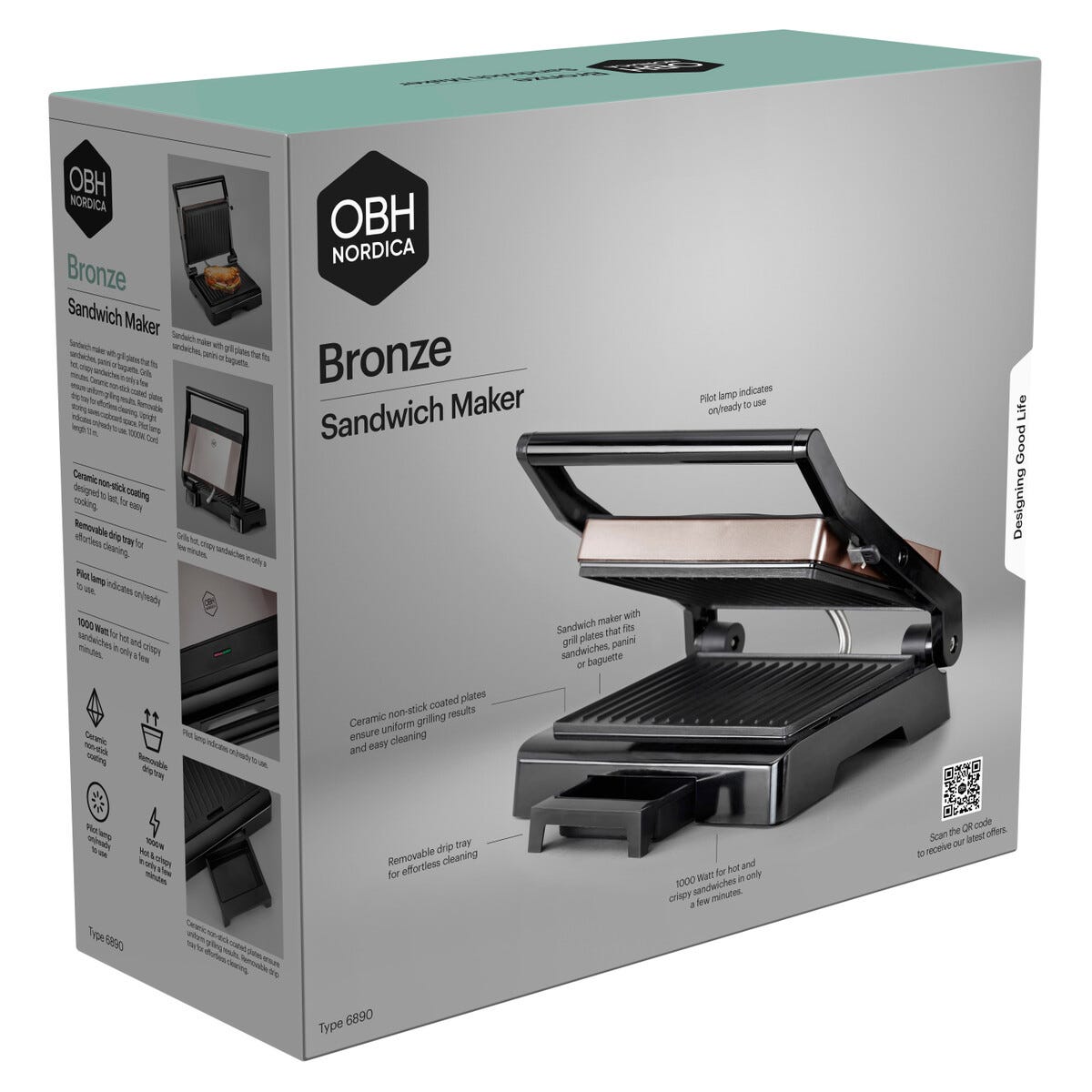 OBH Nordica Bronze smørbrødgrill panini, keramisk