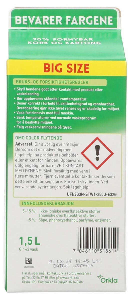 • OMO Expert Color flytende vaskemiddel gir cirka 42 vask per flaske.
