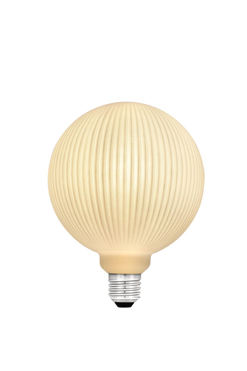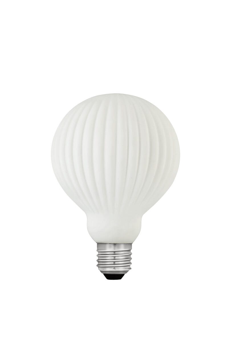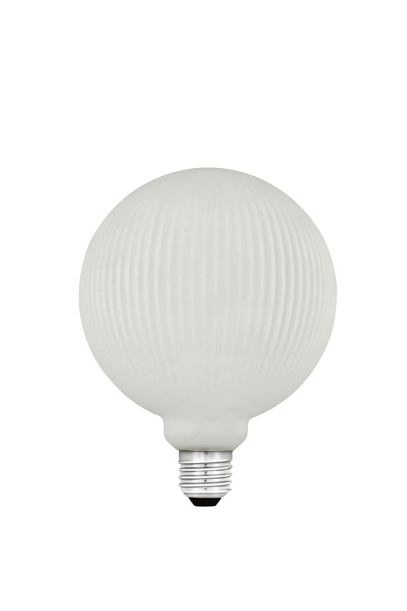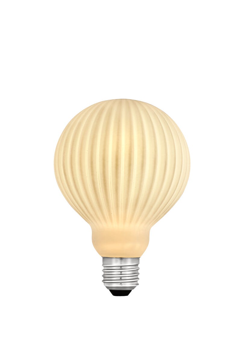• 190 lumen. Stor pære med opalfarget glass med ribber.
