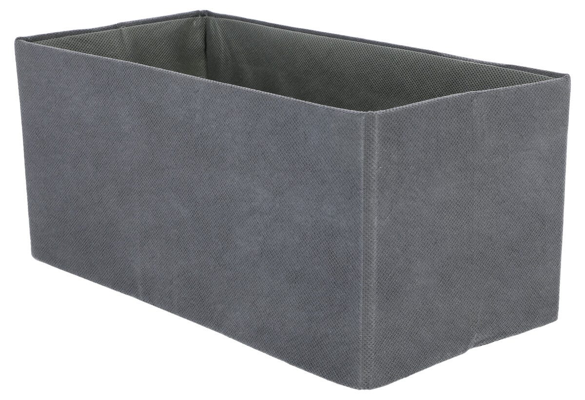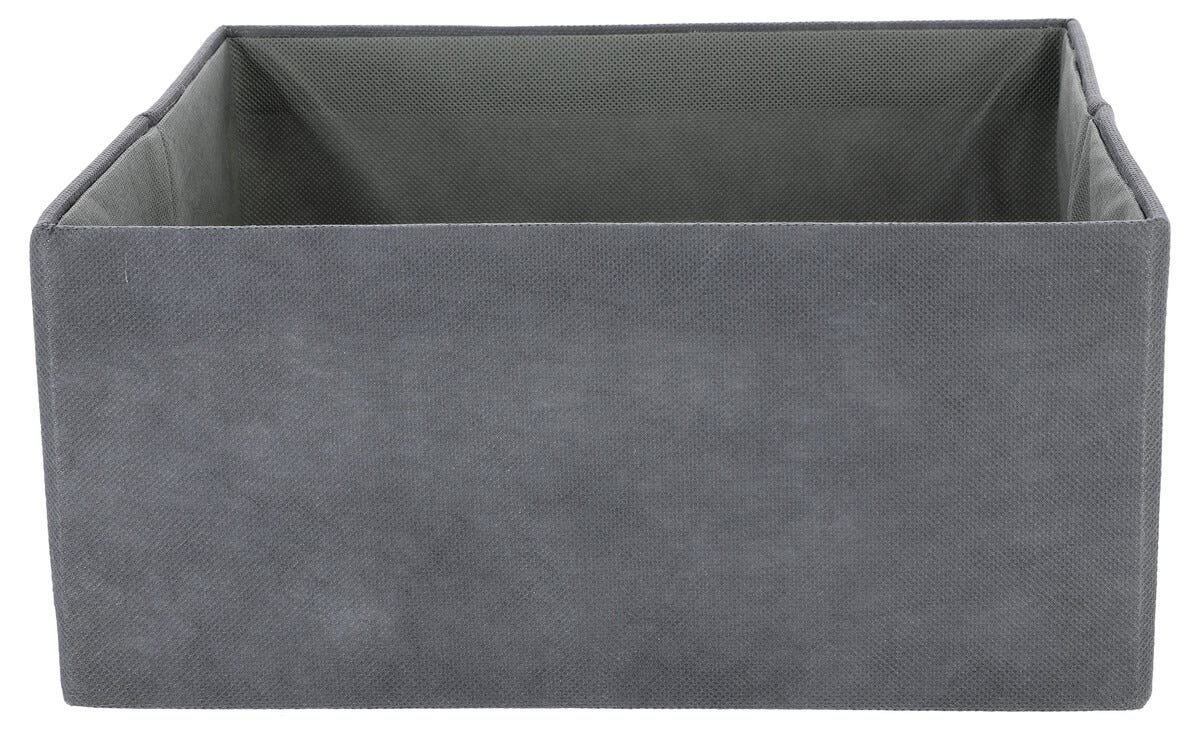 • Åpen tekstiltrukket boks med forsterkede sider og bunn.
