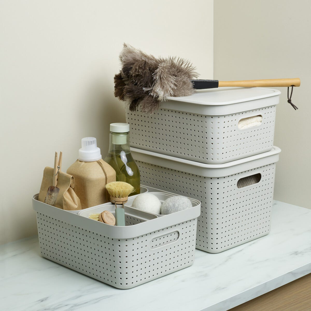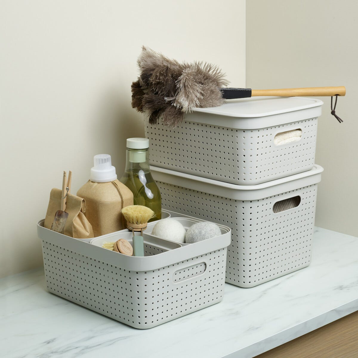 Oppbevaringskurv Neat beige, resirkulert plast