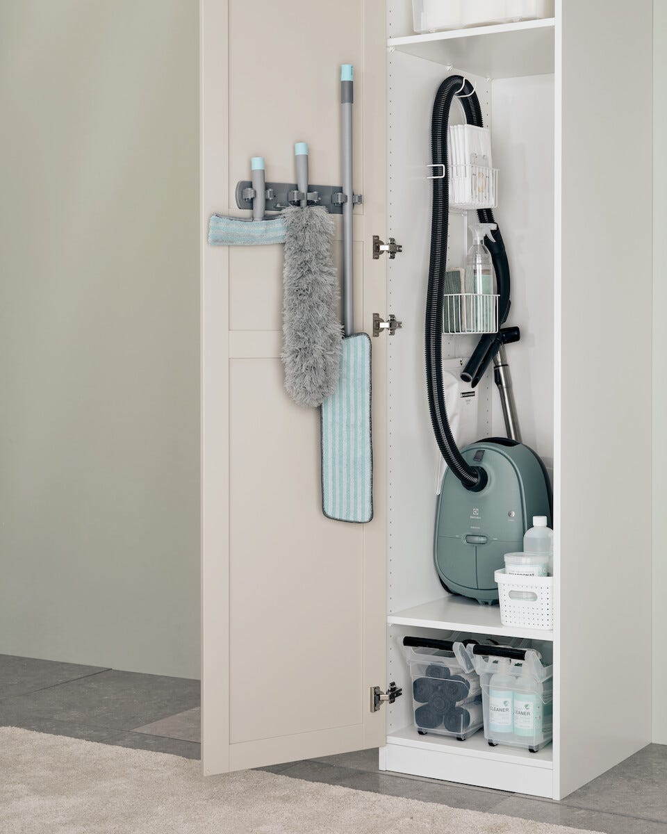 • Få orden i vaskeskapet med støvsugerslangen hengende på veggen.