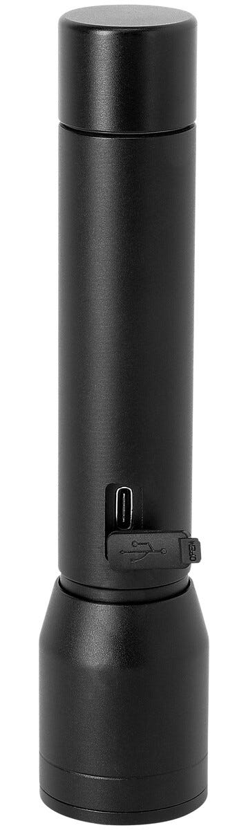 • Lommelykten lades via USB-C (kabel følger med, adapter selges separat).
