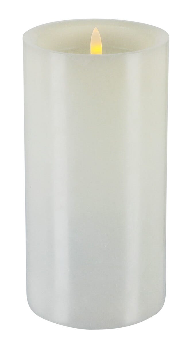 • Flott, hvitt kubbelys med naturtro flamme – lyser i opptil 180 timer per lading.