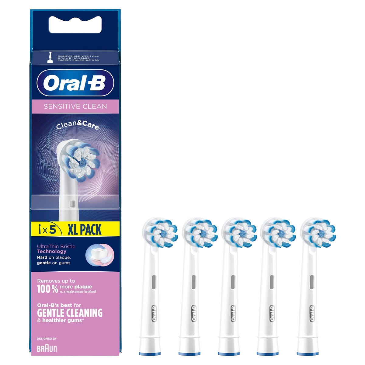 • Oral-B Sensitive Clean fjerner inntil 100 prosent mer plakk enn en manuell tannbørste.