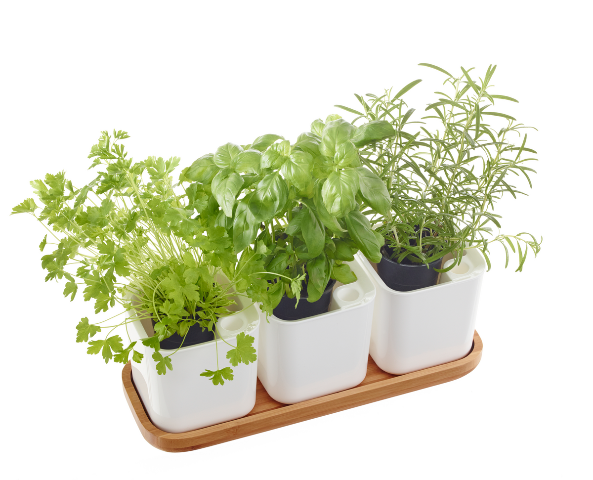 Orthex Eden urtepotter på bambusunderlag