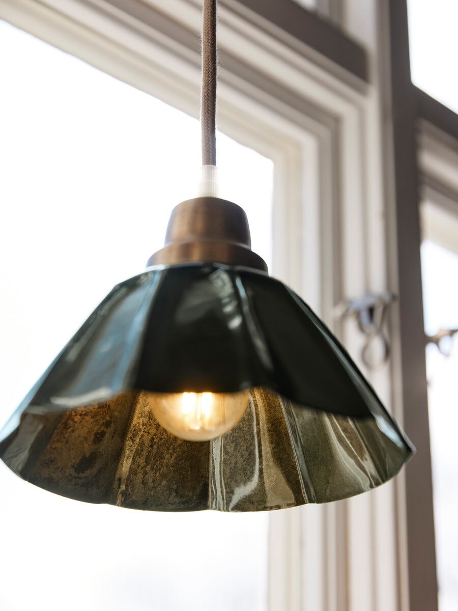 • Varm vintagefølelse med en nett vinduslampe i metall med marmorert finish.