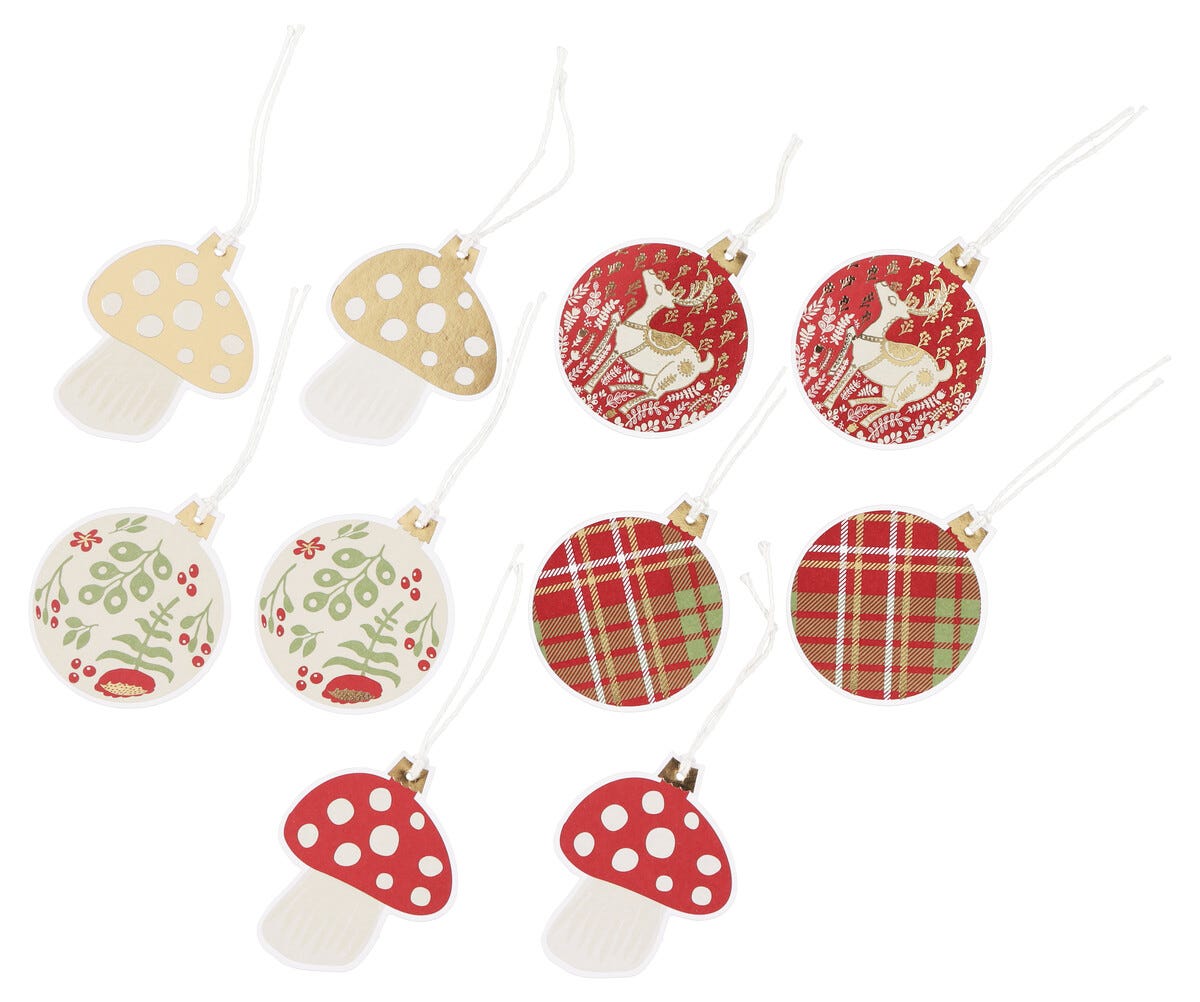 Pakkelapper, julekuler og sopp, 10-pakning