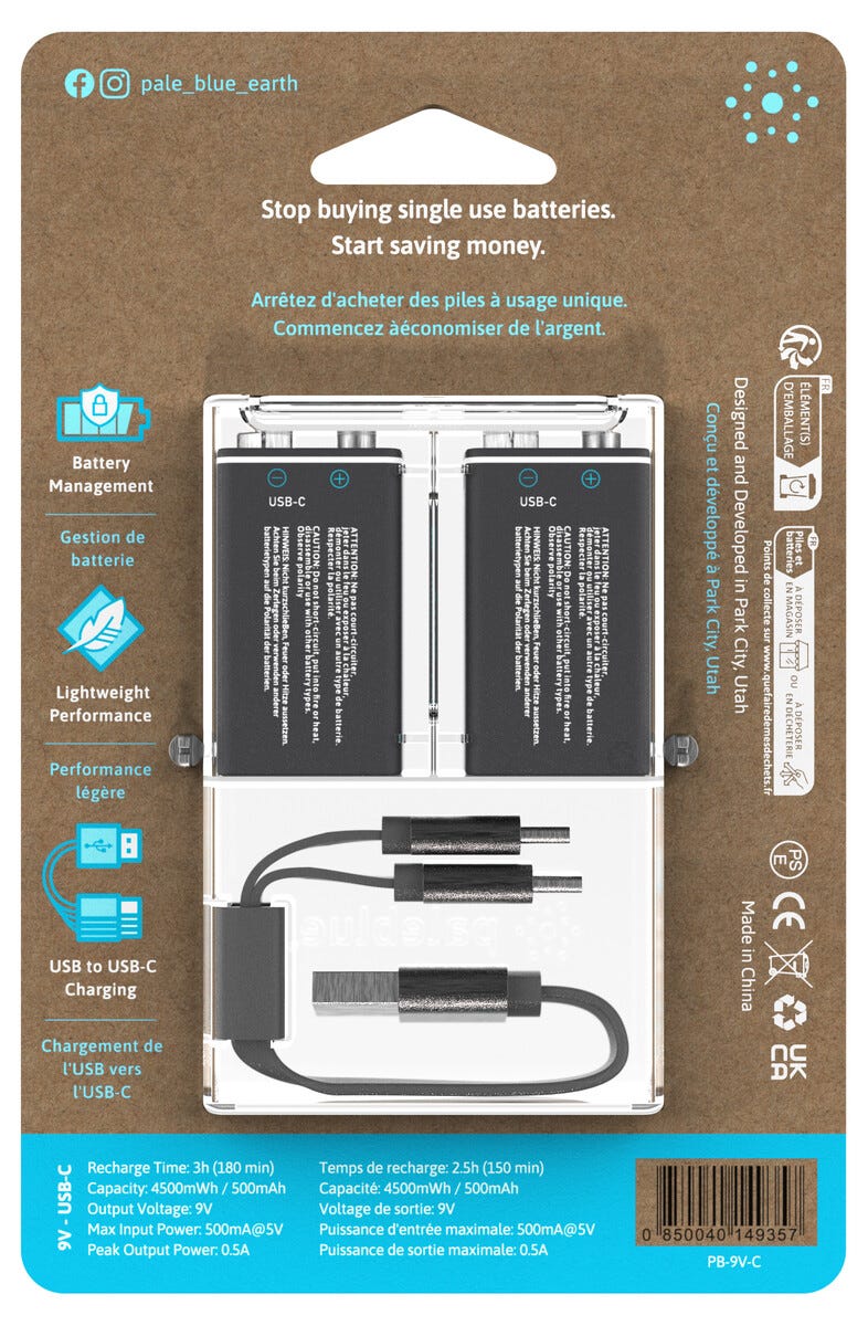 Pale Blue 9 V oppladbare batterier USB-C, 2-pakning