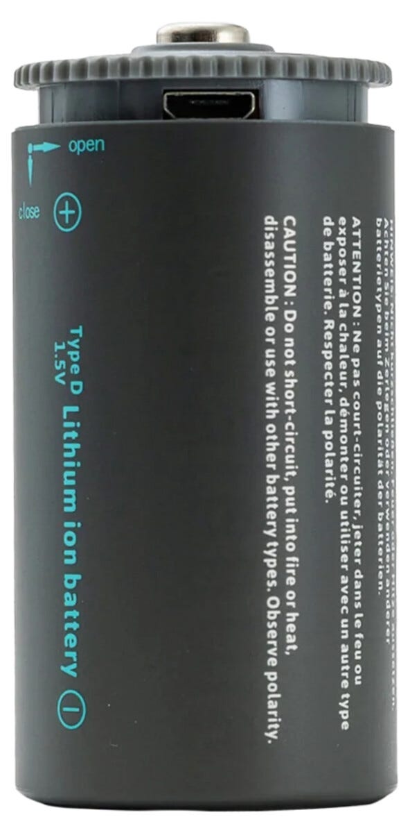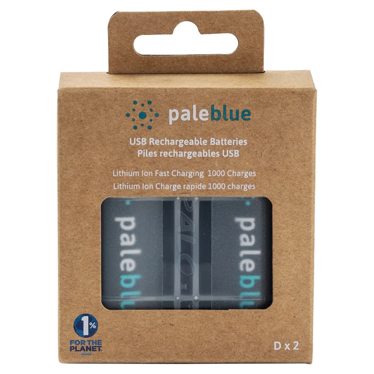 • Pale Blue oppladbare D-litiumbatterier – 2-pakning.