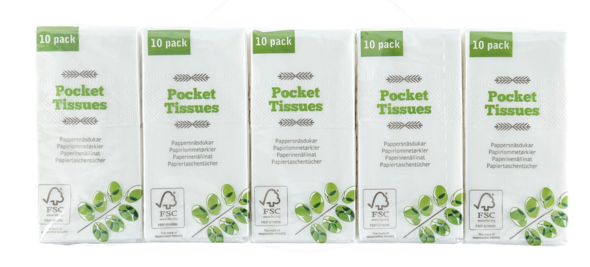 Papirlommetørklær, 10 pk