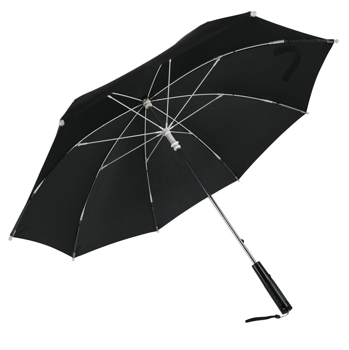 • Lys opp regnværsdager med innebygd LED-belysning langs paraplyens stenger.