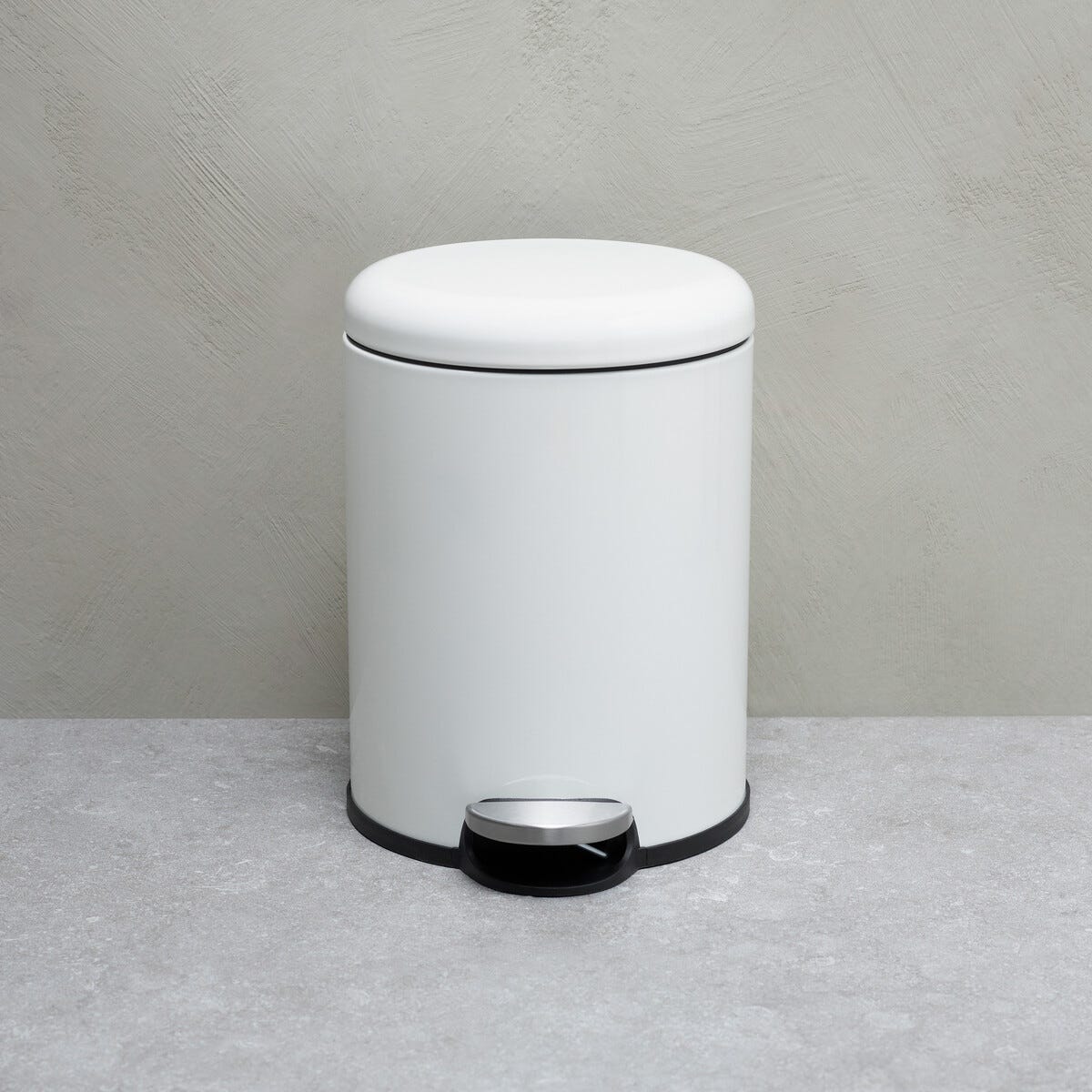 • Liten pedalbøtte med lokk med myk lukking.