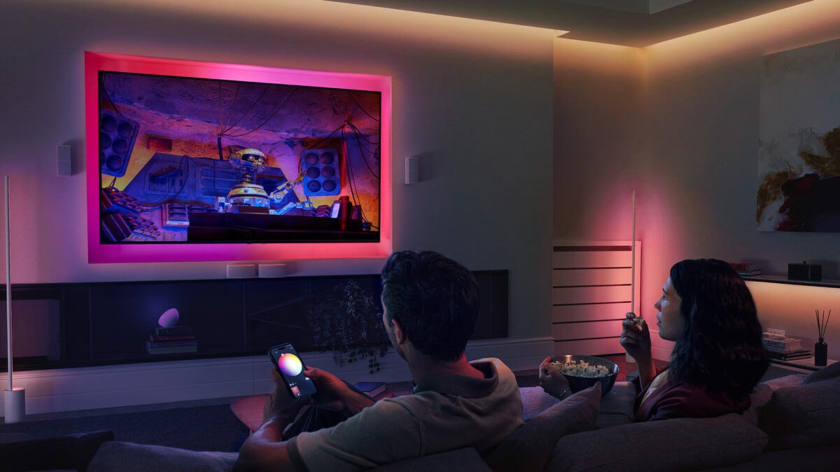• Philips Hue Flux LED-stripe skaper stemning med farget og hvitt lys.