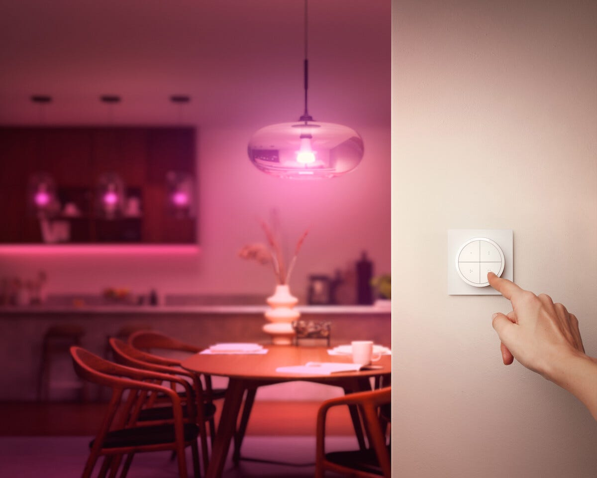 • Philips Hue Wall Switch Module – veggstrømbryter og fjernkontroll i ett.