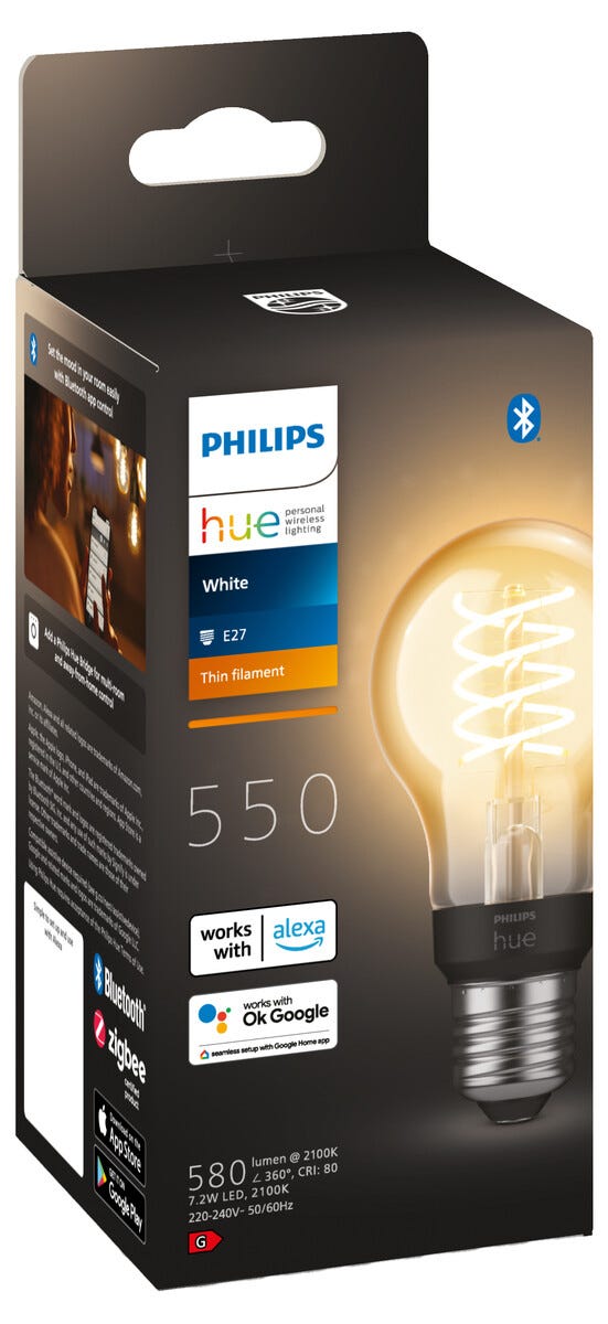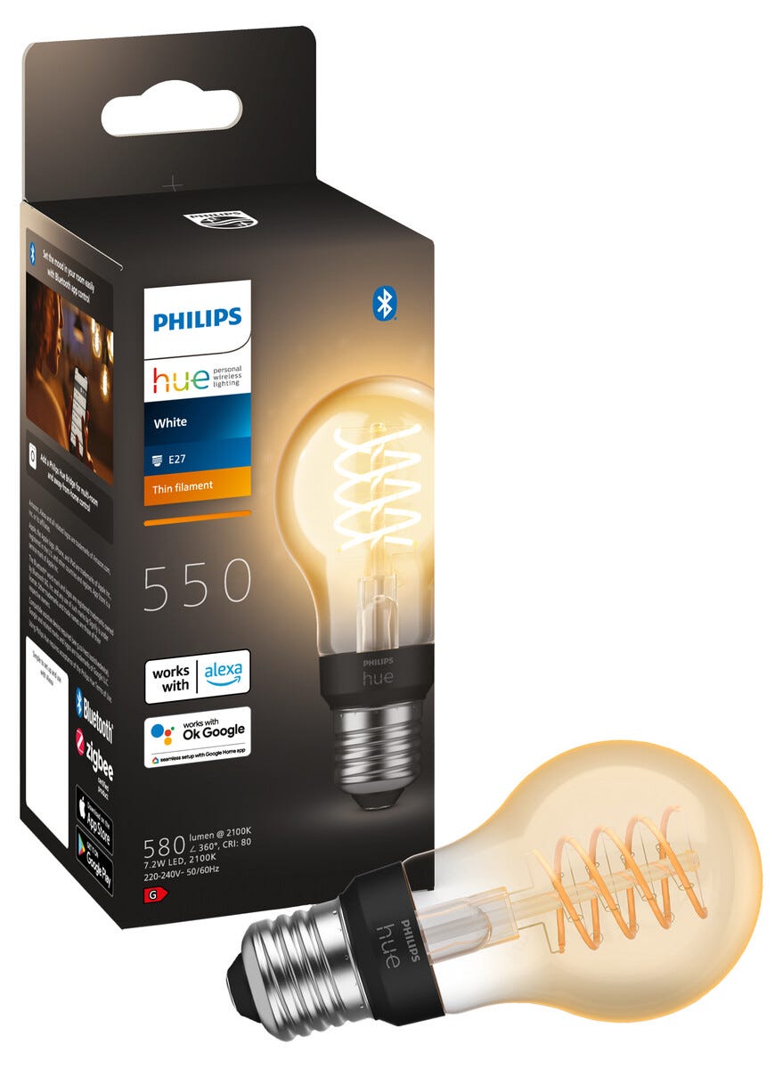 • Dimbar Philips Hue White LED E27 – ligner på gamle glødepærer med tvunnet glødetråd.