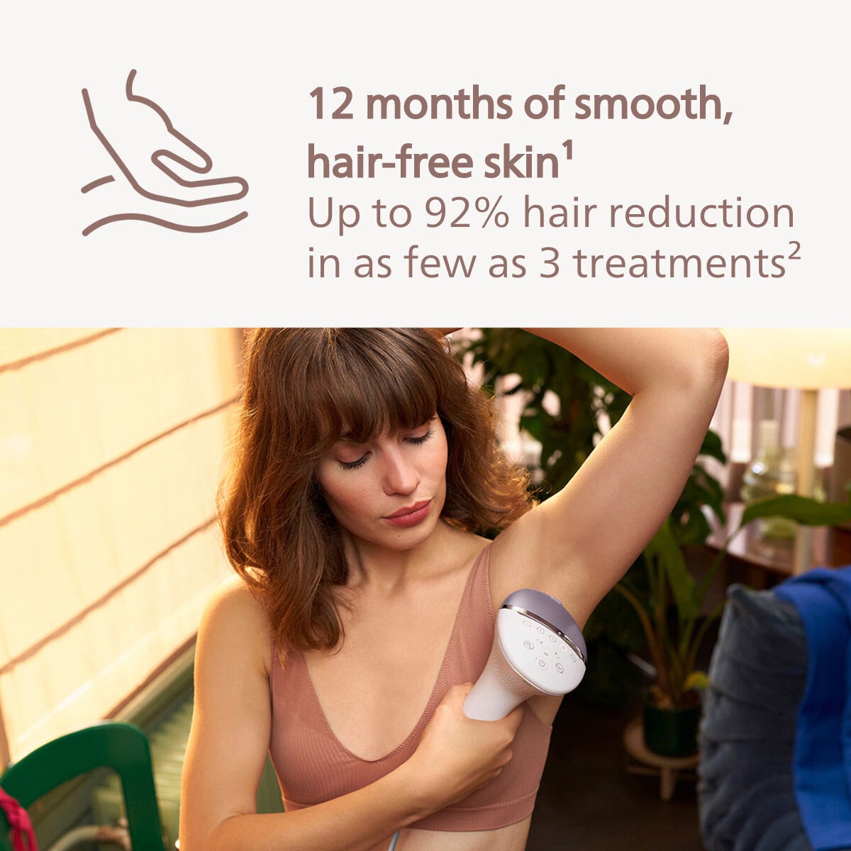 • Smertefri, permanent hårfjerning med lysimpulser.