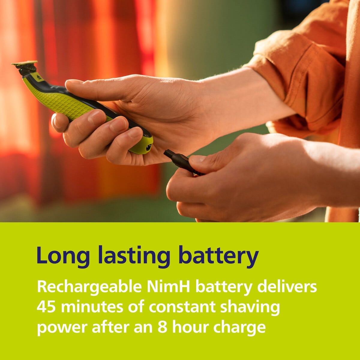 • Trim, form og barber med en oppladbar barberhøvel.