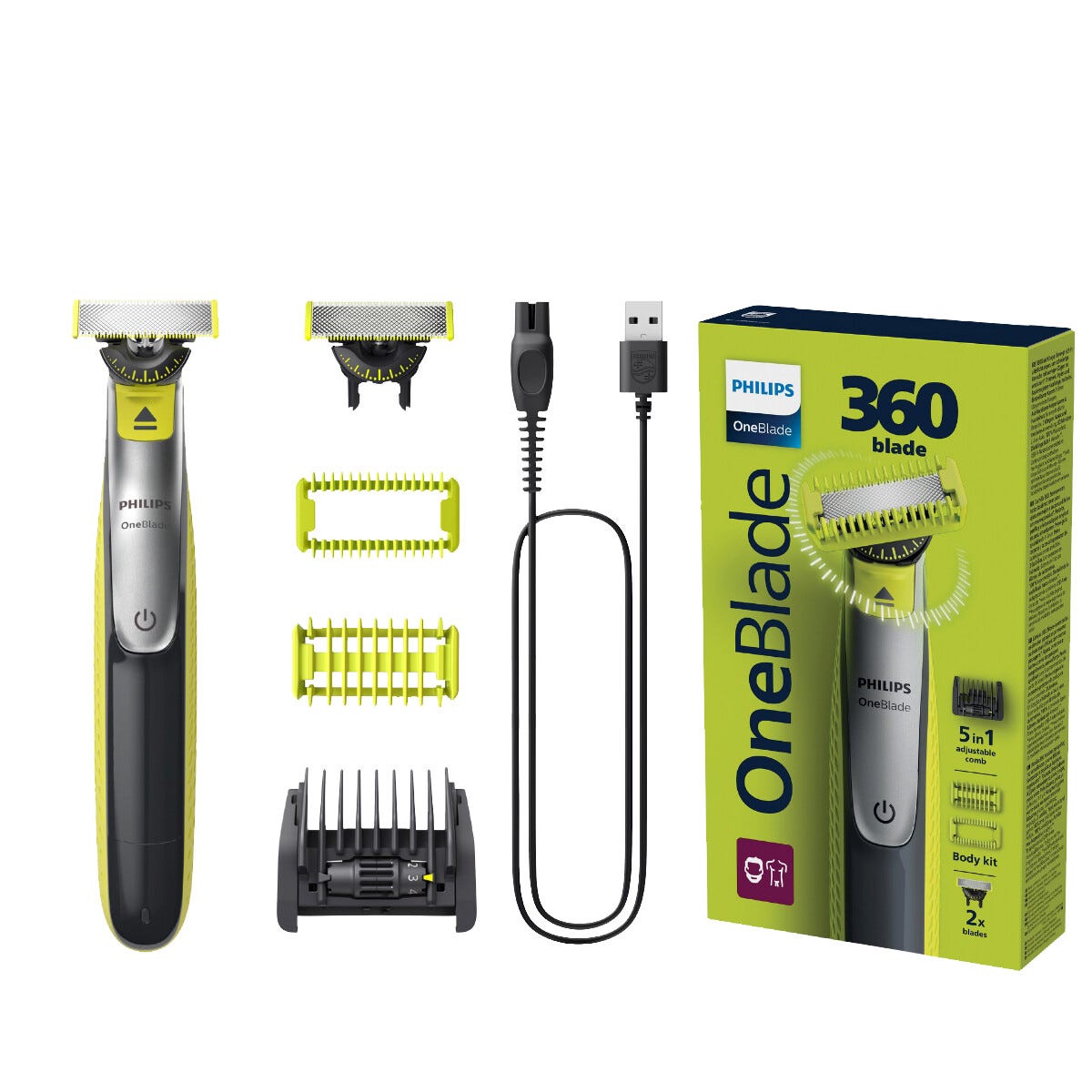 • Leveres med barberblad, kroppshårtrimmer og USB-A ladekabel (strømadapter selges separat).