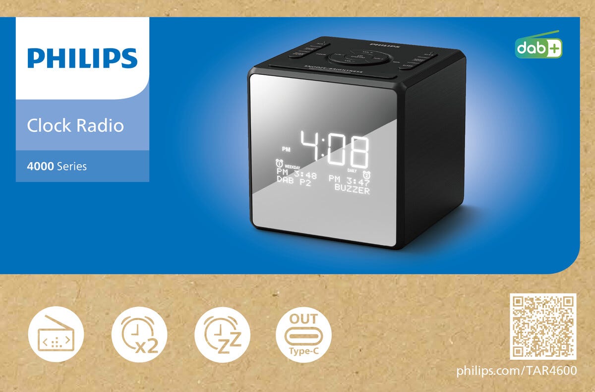 Philips R4600 klokkeradio med DAB+ og USB-C