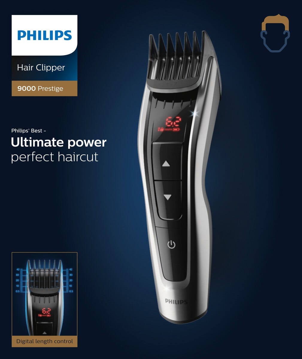 • Philips hårtrimmer series 9000 – brukes med eller uten ledning.