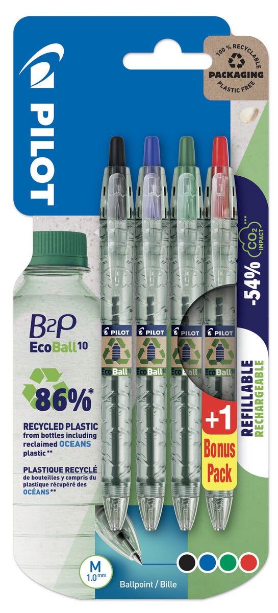 Pilot Ecoball Medium 1,0 mm kulepenn, 4-pakning