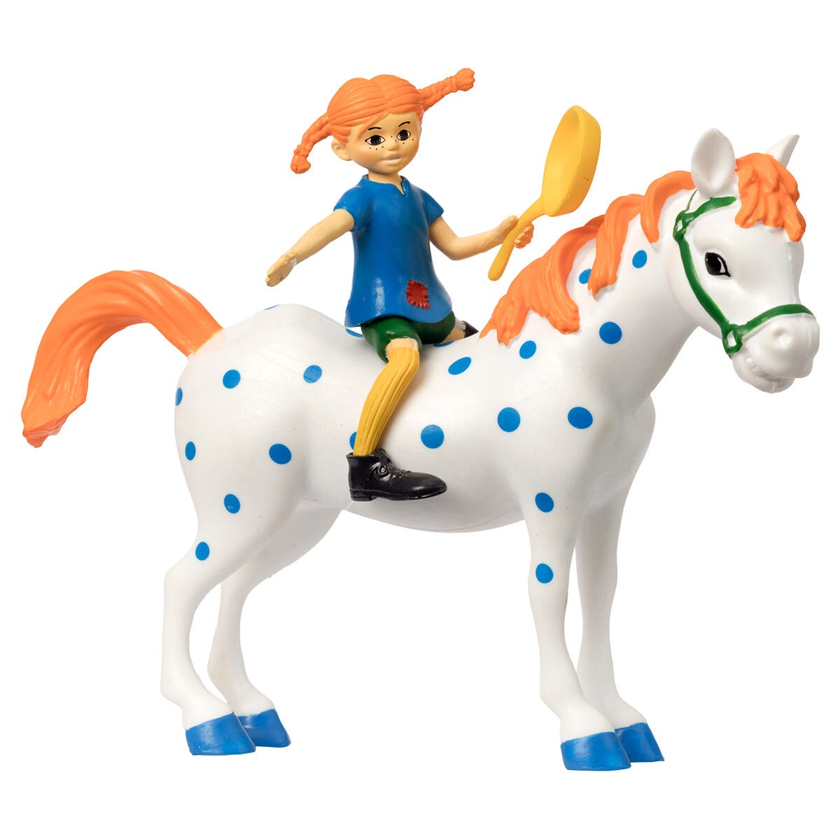 • Pippi kan sitte på hesten og holde stekepannen.