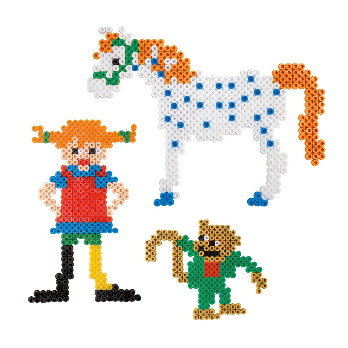 • Perle Pippi, Lille Gubben og Herr Nilsson – 2 perleplater og mønsterkort følger med.