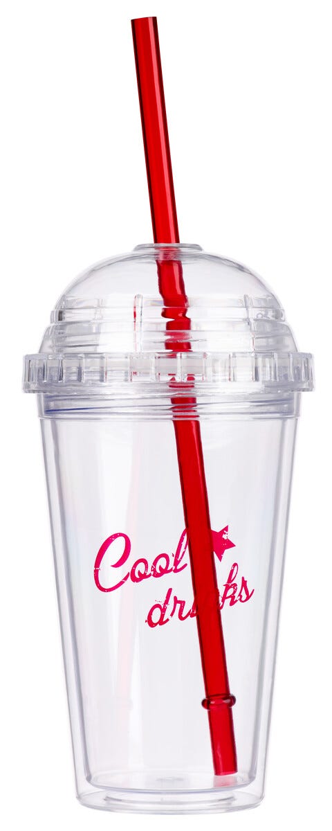 Plastglass med sugerør