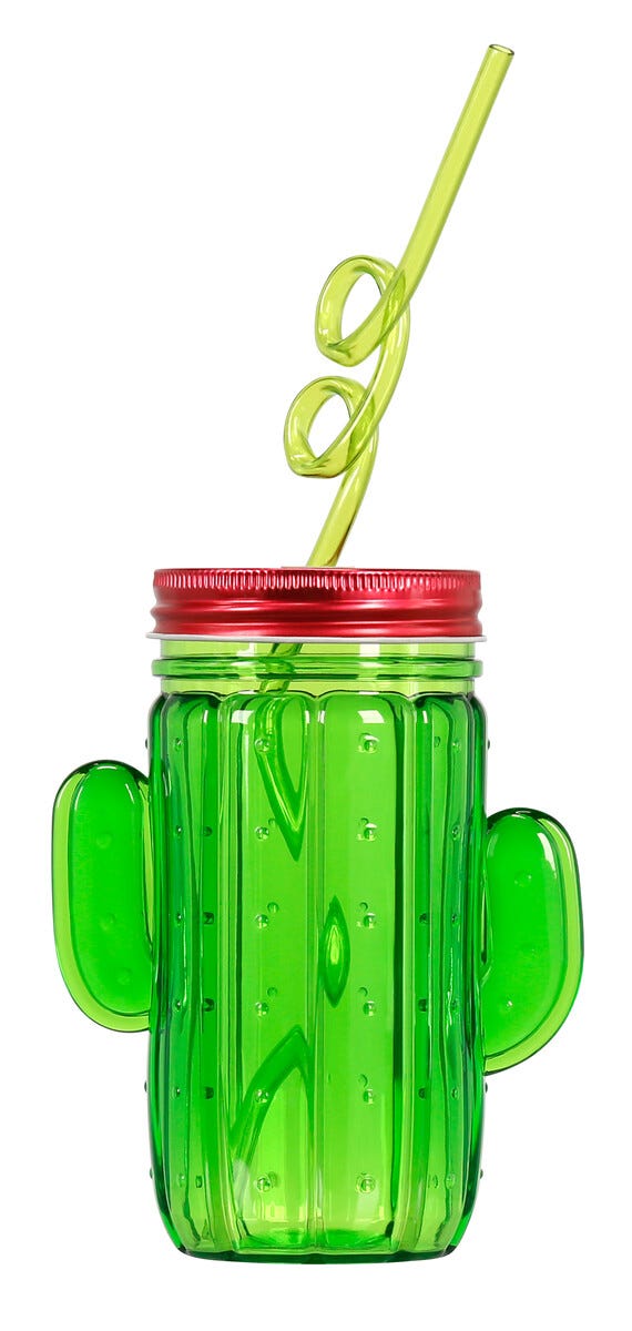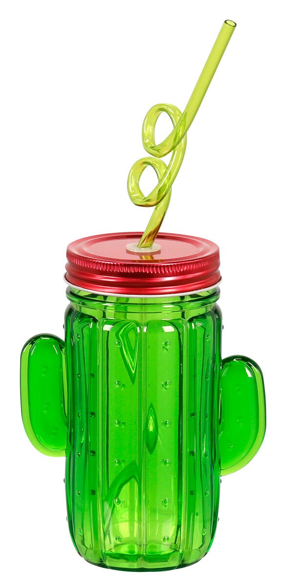 Plastkrus med lokk og sugerør, kaktus