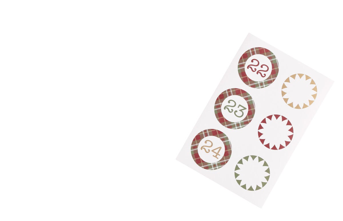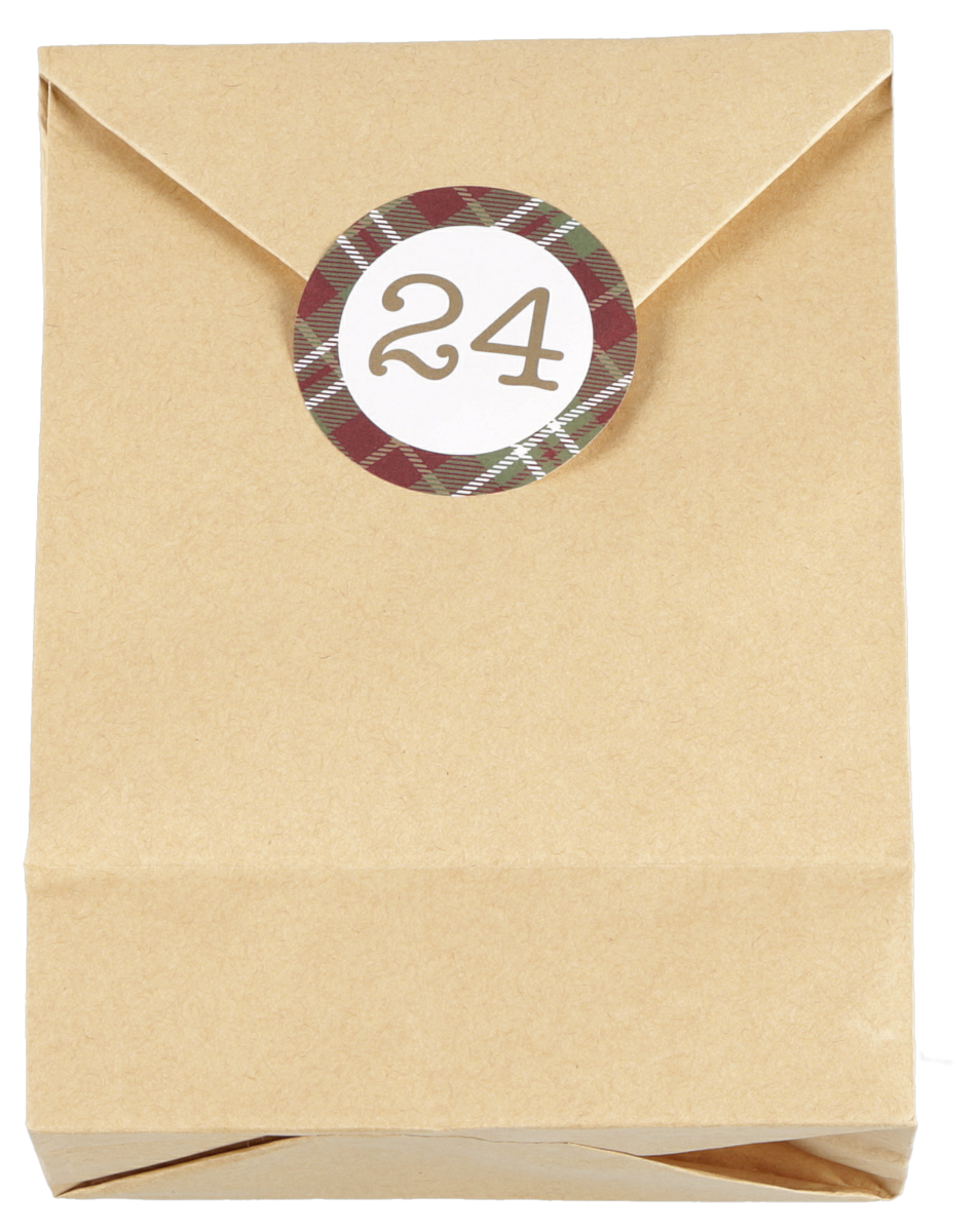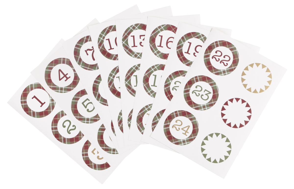 Poser med etiketter, til adventskalenderen, 1-24
