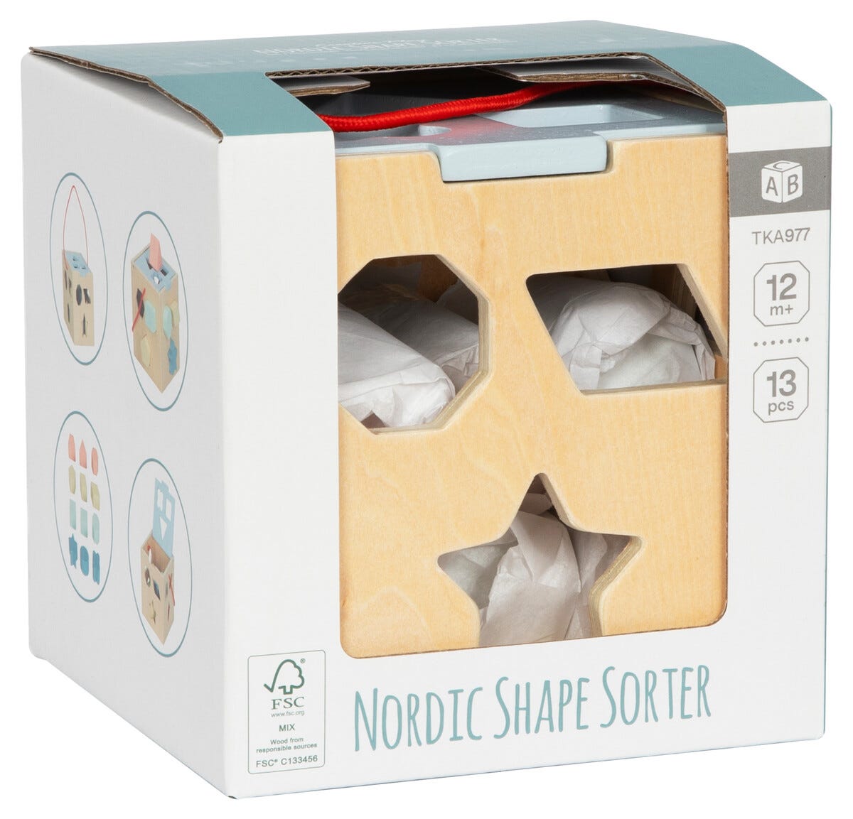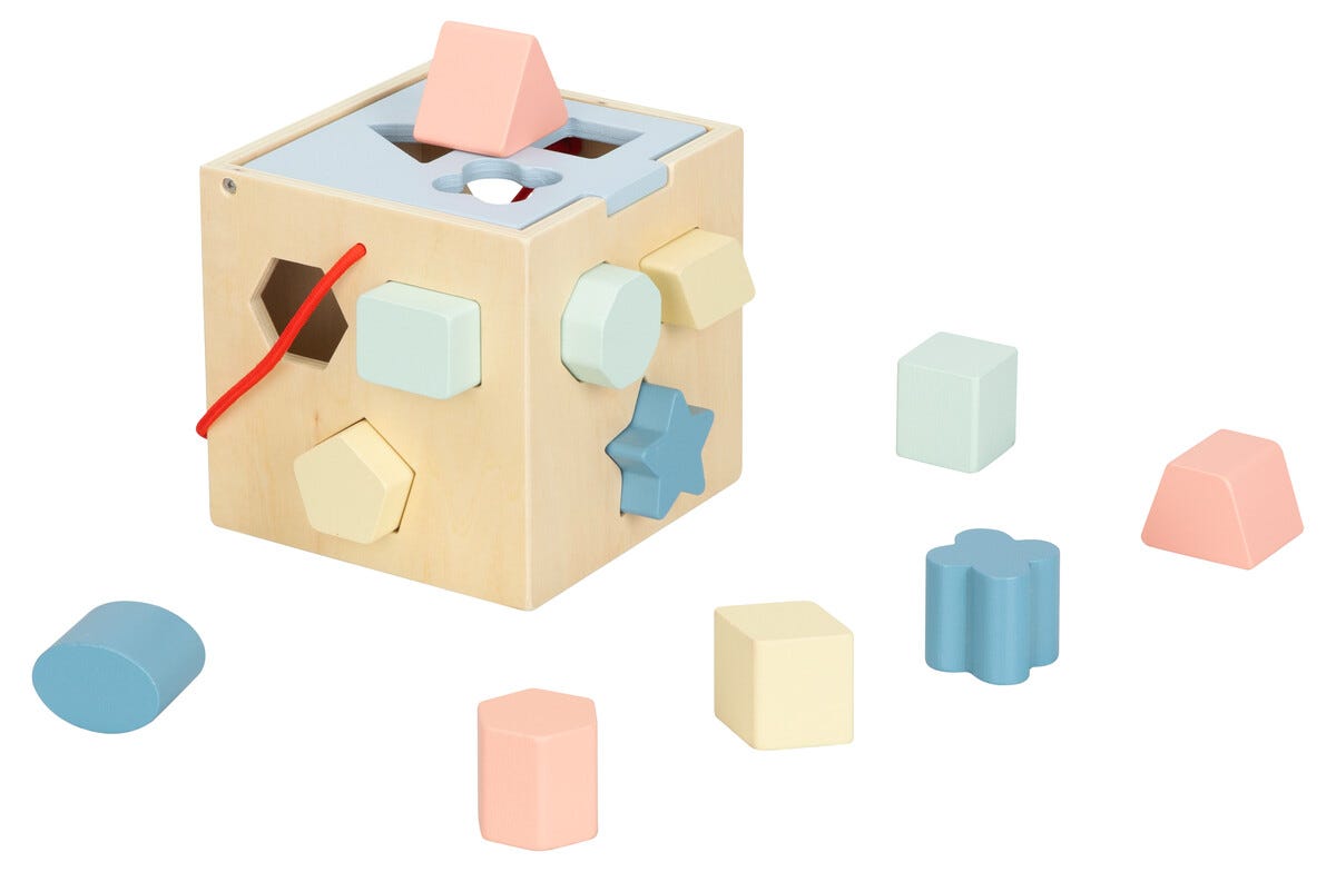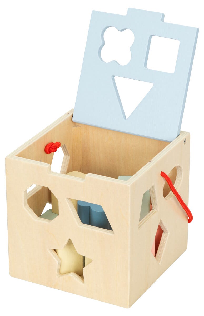 • Klassisk puttekasse med åpninger på 5 sider – gøyal lek med matching av former for småbarn.