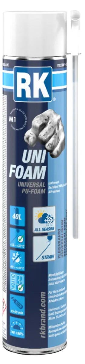 • RK Uni Foam fugeskum – perfekt for isolering, tetting og installasjoner.