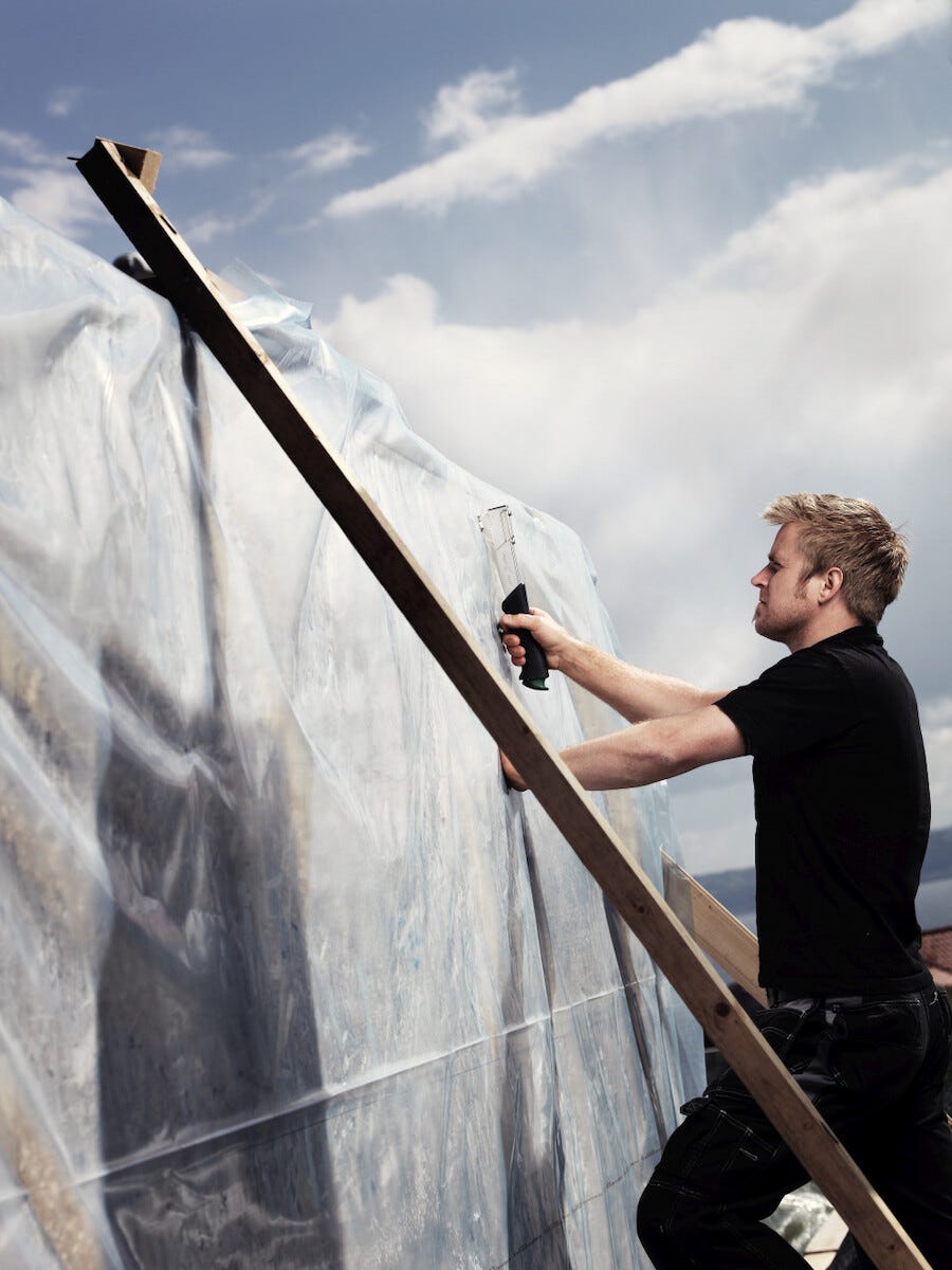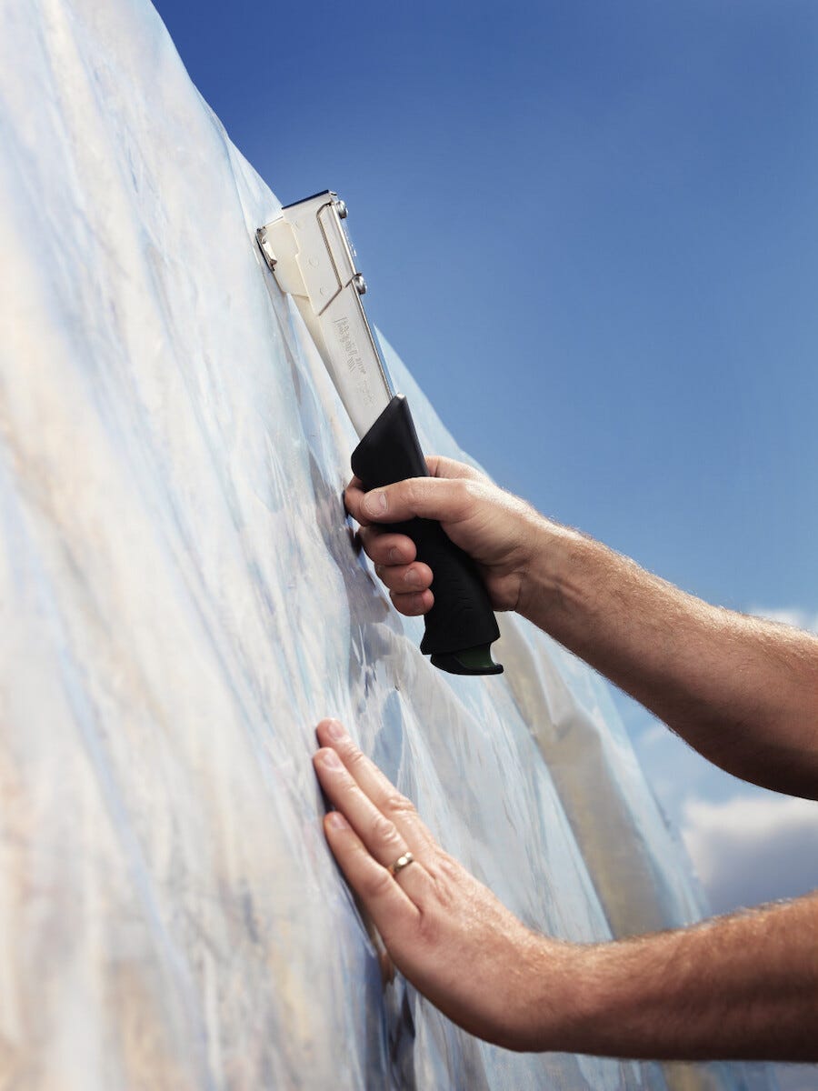 • Kraftig stiftehammer for taklegging og festing av tepper og isolasjon.