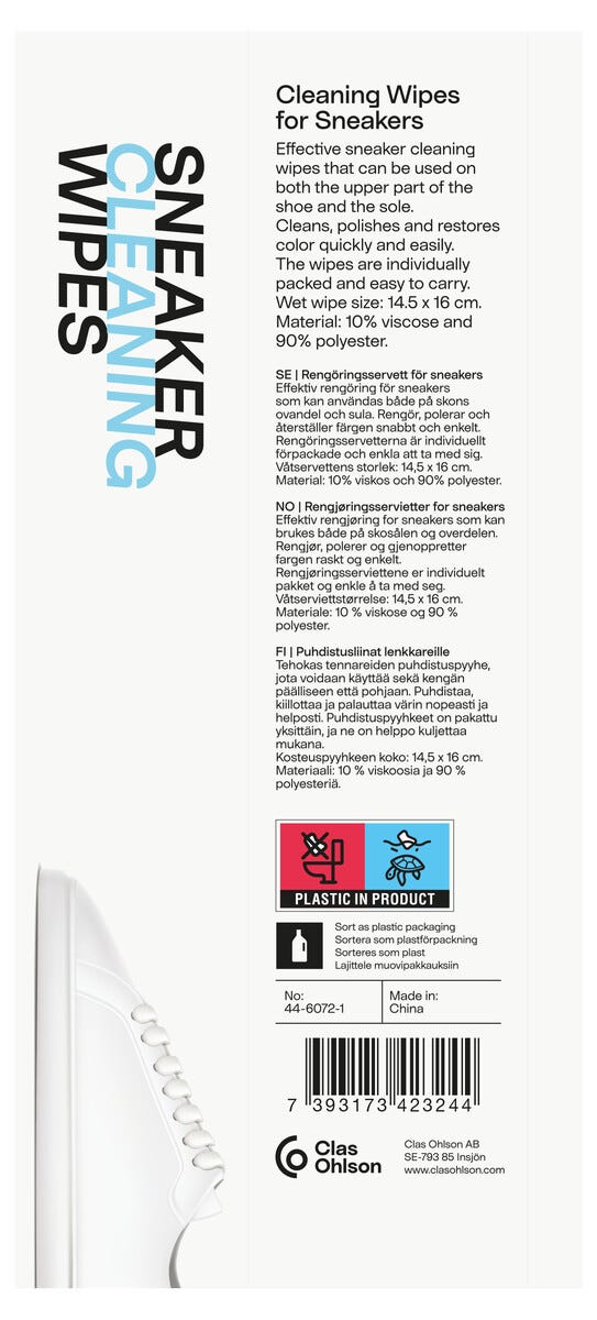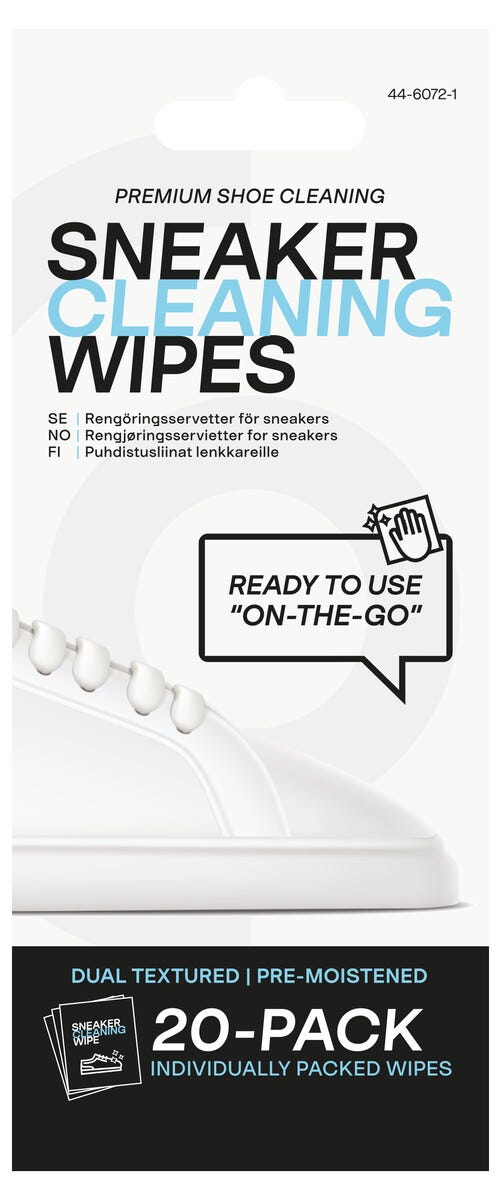 • Myke våtservietter til rask og enkel rengjøring av sneakers.
