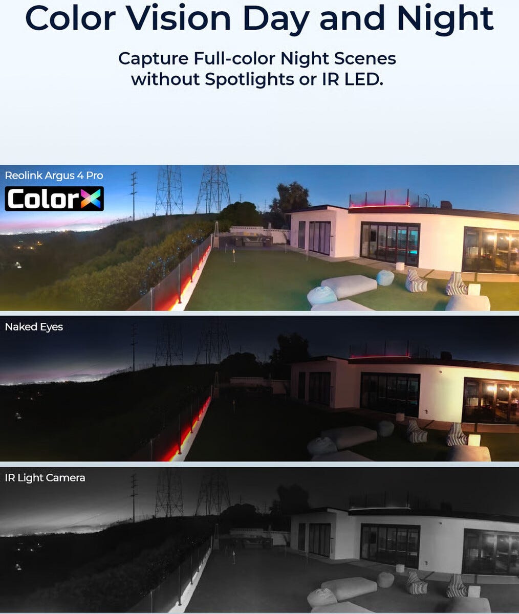 • Trådløs 4K-overvåkning med farger døgnet rundt – ingen blindsoner.
