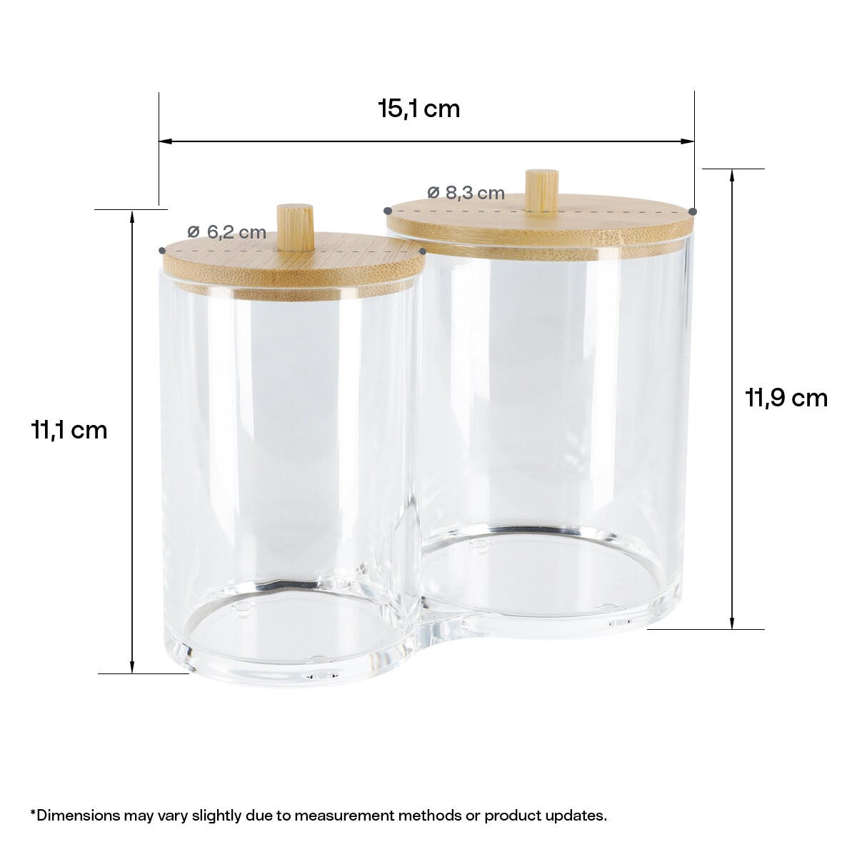 • Dobbel boks – 2 større bokser: 15,1 x 8,3 x 11,9 cm.