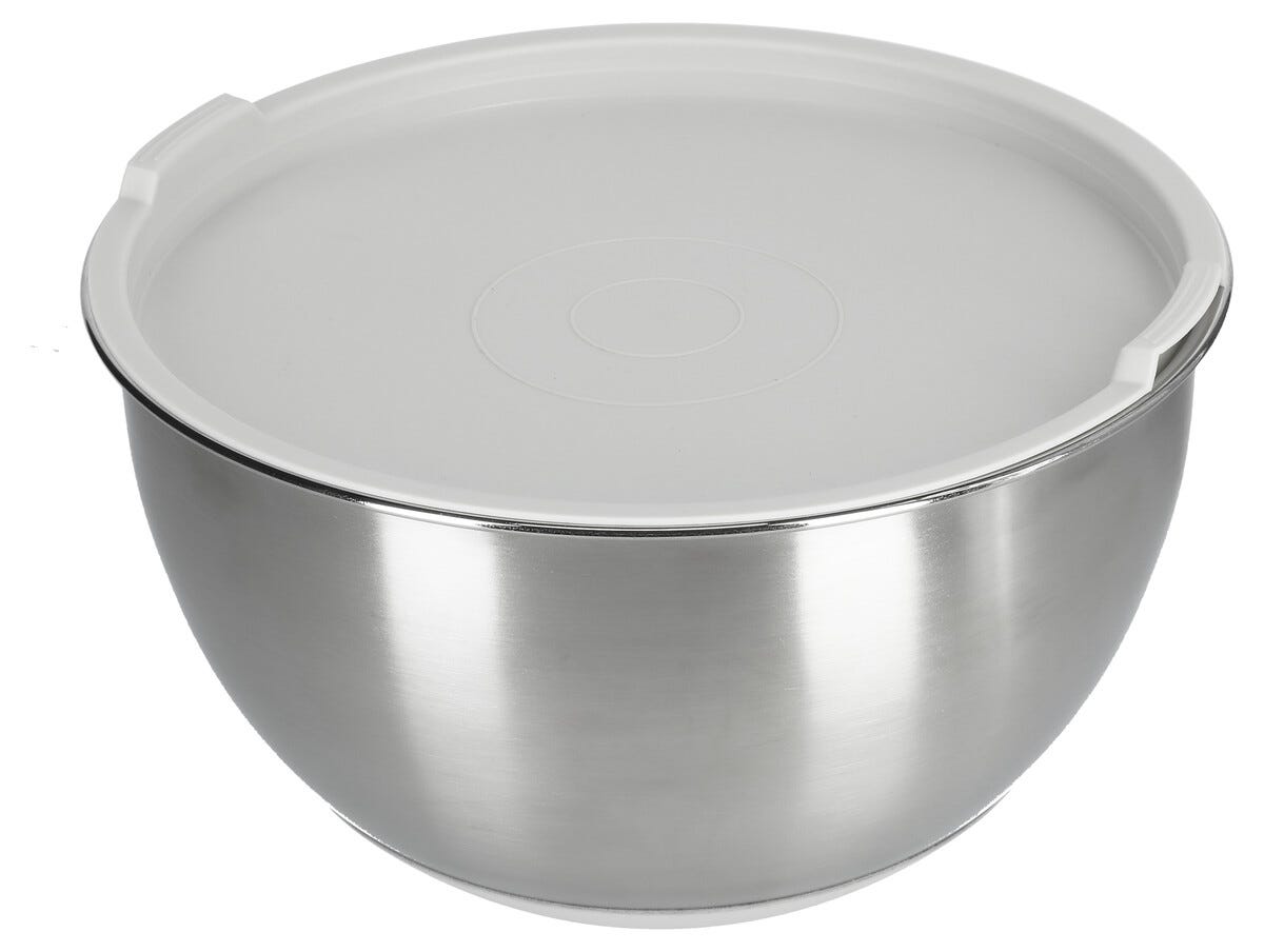 • Bakeboller med måleskala, silikon på undersiden og lokk i PE-plast.