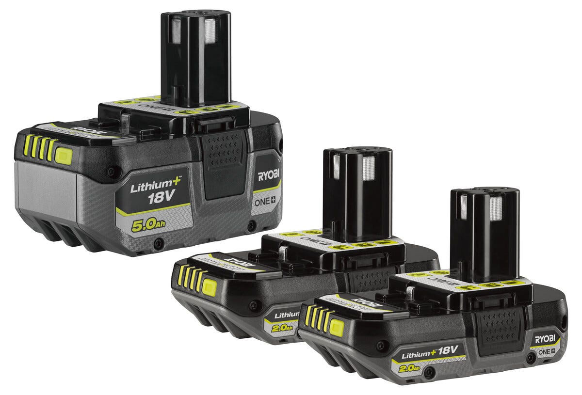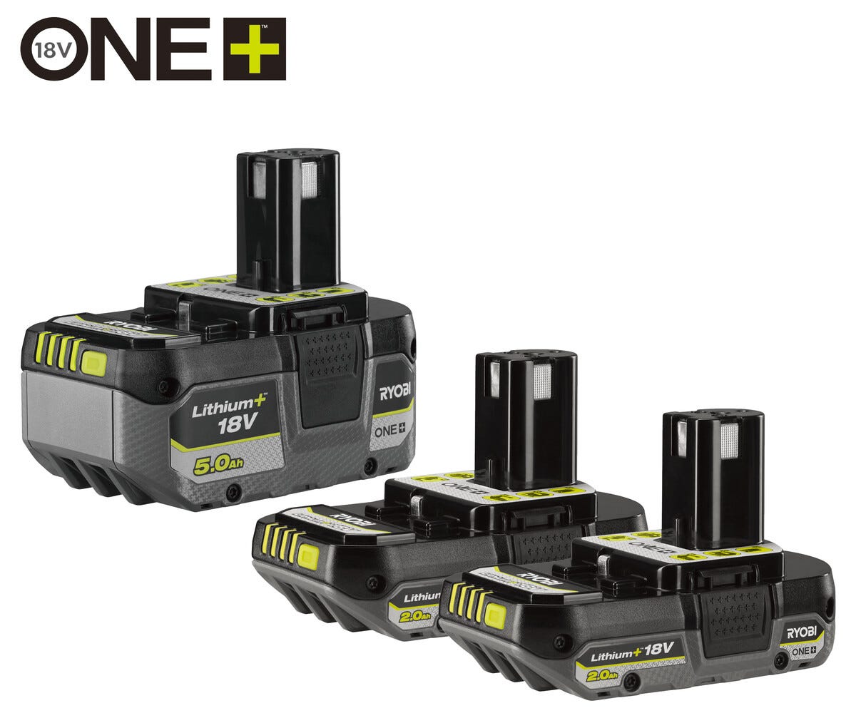 Ryobi One+-batterier 2 x 2 Ah, 1 x 5 Ah, RB183522