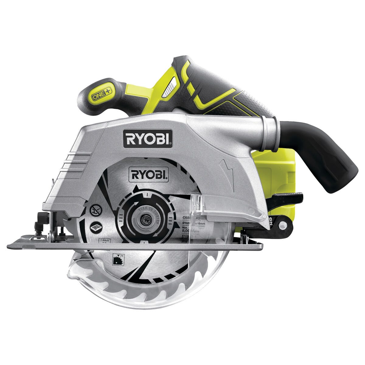 • Ryobi RCS18N-0 – batteridrevet sirkelsag med 165 mm klinge (medfølger).