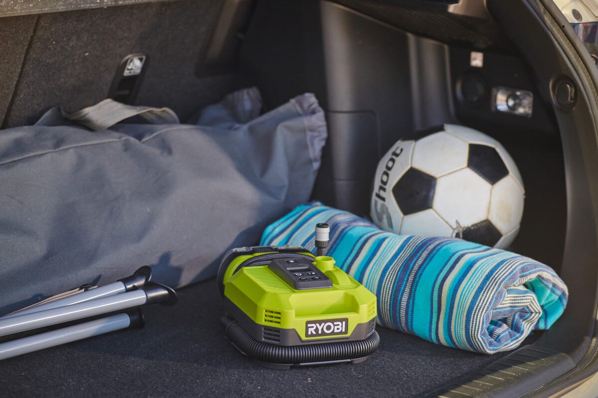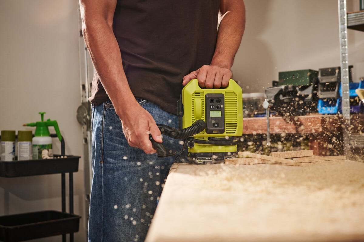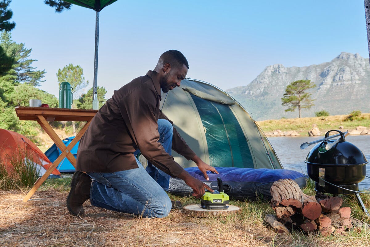• Ryobi RMI18-0 – batteridrevet multikompressor som både pumper og tømmer.