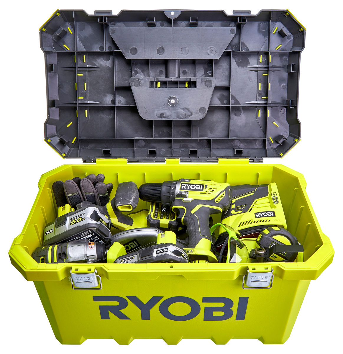 • Stor oppbevaringskoffert for 3–5 Ryobi elverktøy med tilbehør.