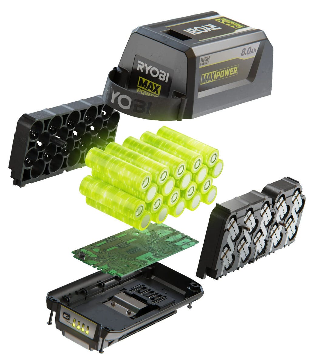 • Ryobi RY36B12A – kraftig batteri med støtbeskyttelse, LED-indikator og IntelliCell-teknologi.